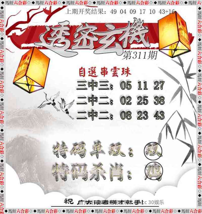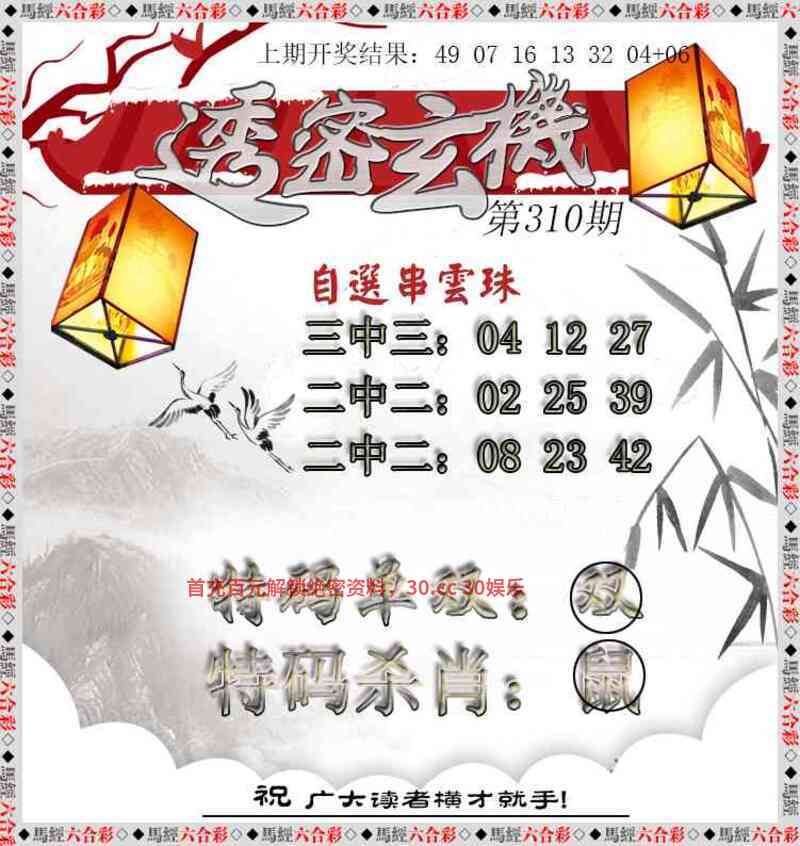| 310期:今期马兔鸡出特,能均汉祚三分业开:虎16准 ②合单+小数 本人取特都是有思路可寻,对错看天意,喷狗绕道 |